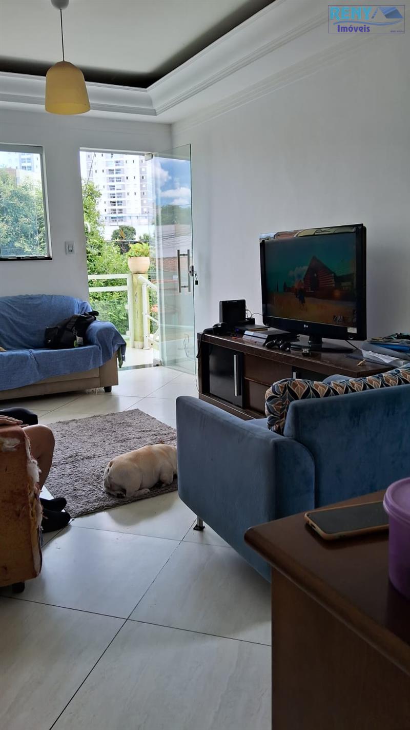 Sobrado com 02 suítes com ar condicionado sendo um com closet, 01 dormitório no piso inferior, banheiro social, sala dois ambientes, cozinha com fogão eletrico de indução, área de serviço coberta, garagem para 03 veículos sendo 02 cobertas, portão eletrônico. Imóvel todo em piso porcelanato, janelas e portas em blindex.
